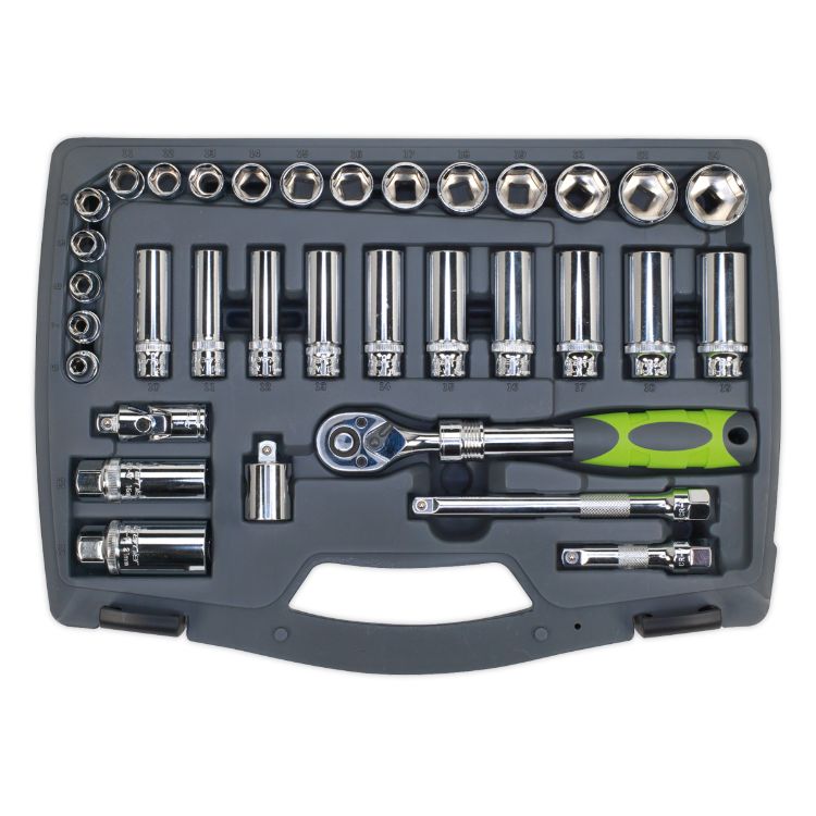 Sealey Socket Set 34pc 3/8" Drive 6pt WallDrive 72-Tooth Metric (Premier)