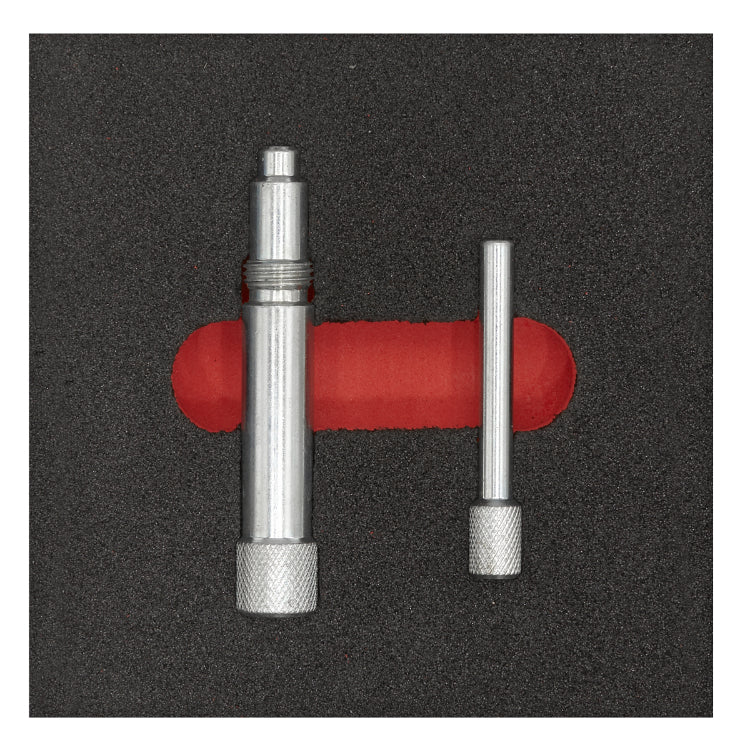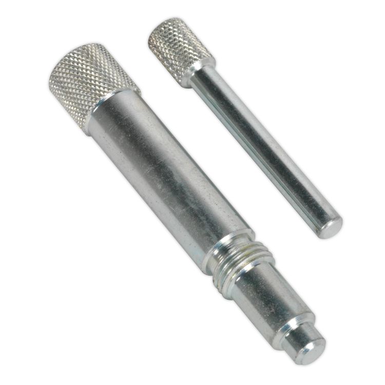 Set comprises flywheel locking pin (threaded) and camshaft locking pin to cover engine timing on the Land Rover TD5 engines in Defender and Discovery models.