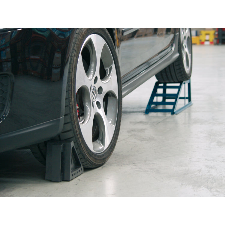 Prevents vehicle movement when being jacked on a level surface or parked on an incline not exceeding 12°.