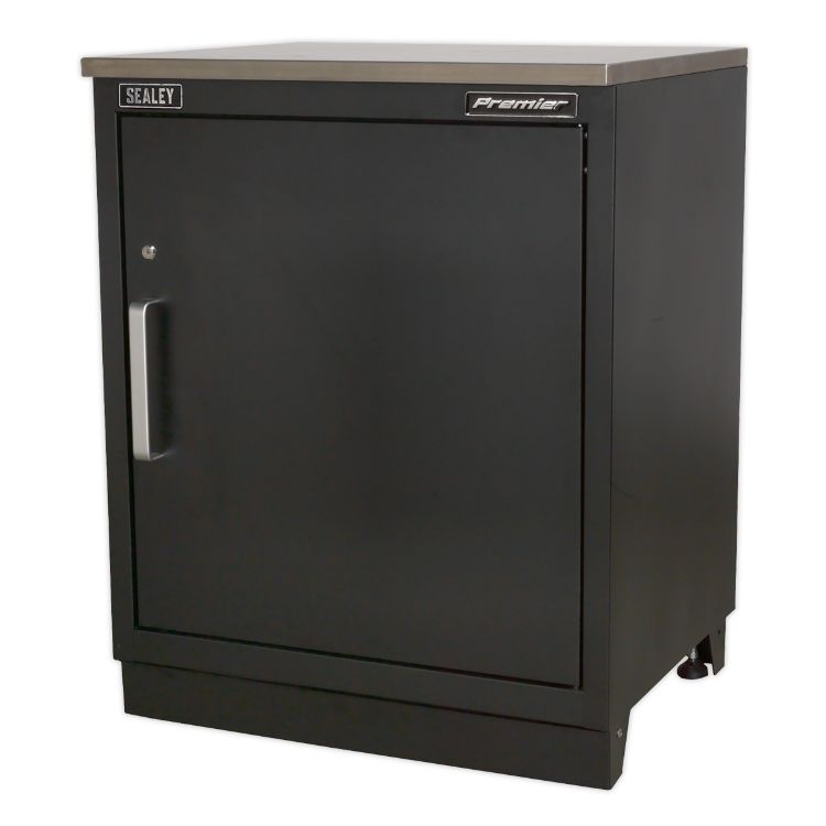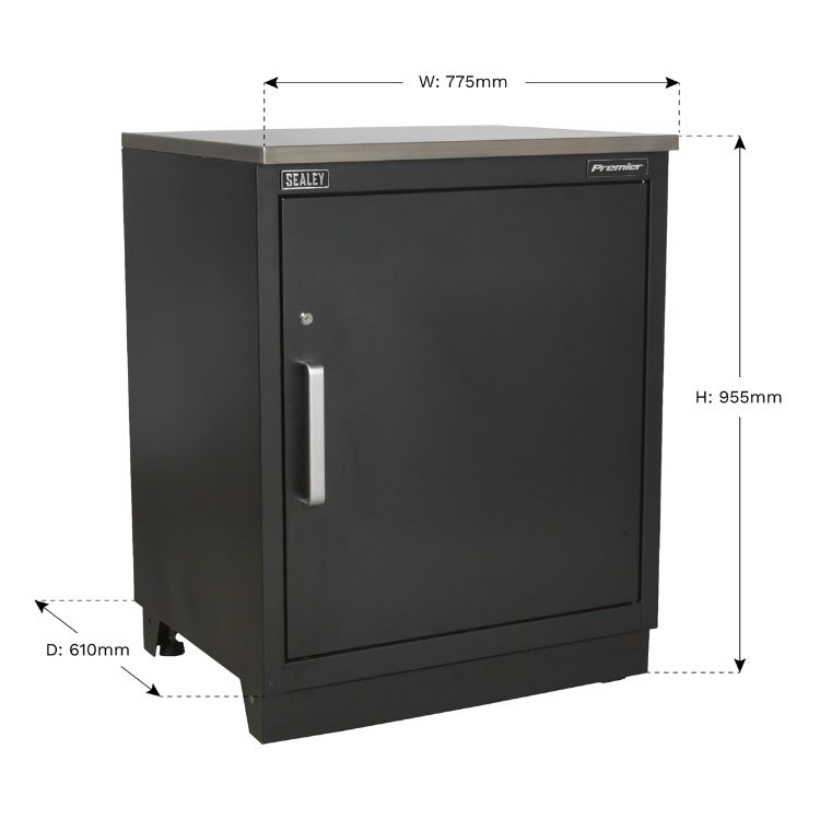 N.B. ILLUSTRATED WITH OPTIONAL WORKTOP - Don't forget to order your choice of Hardwood or Stainless Steel separately. Use as part of a complete professional garage storage system or as an individual storage unit. All steel construction, a graphite powder coat finish. Brushed aluminium handles. Choice of stainless steel or hardwood worktop. Features one adjustable shelf and four level-adjusting feet. High quality lock, two keys. Supplied fully assembled.