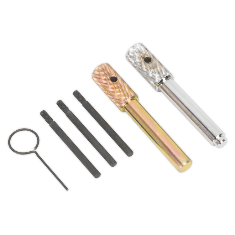 Provides timing retention for Ford 2.0, 2.2, 2.4 and 3.2 Duratorq Puma chain diesel engines.Kit comprises Flywheel Locking Pins (common rail and non-common rail), Camshaft and Injection Pump Locking Pins, Tensioner Locking Pin.Warranty: 1 year