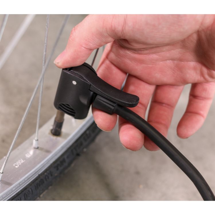 Fitted, twin head for both Presta and Schrader valves and a 360° rotatable hose.