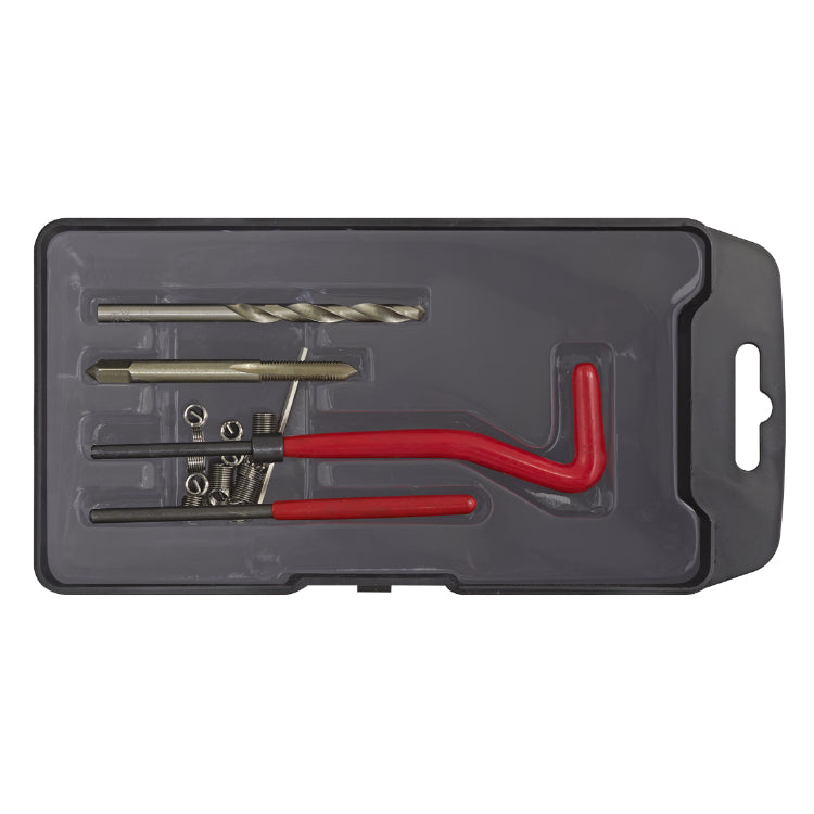 Creates a stronger internal thread in soft metals. Ideal for repairing damaged or stripped internal threads. Protects tapped threads against wear and damage. Includes drill bit, thread tap, insert installation and lug breaking tool. Supplied, three different lengths of thread insert.