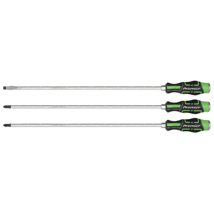 Sealey Extra-Long Hammer-Thru Screwdriver Set - Hi-Vis Green 450mm 3pc (Premier)