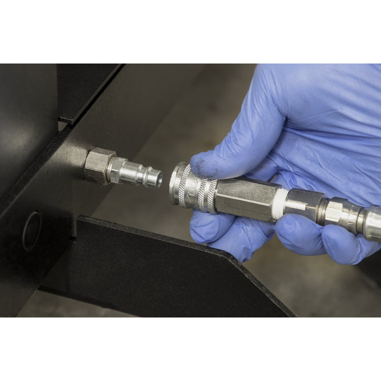 Heavy-duty steel frame construction, integral air motor powering hydraulic pump unit.