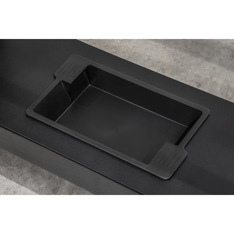 Screw adjustable ram and adjustable work area, removable tray.