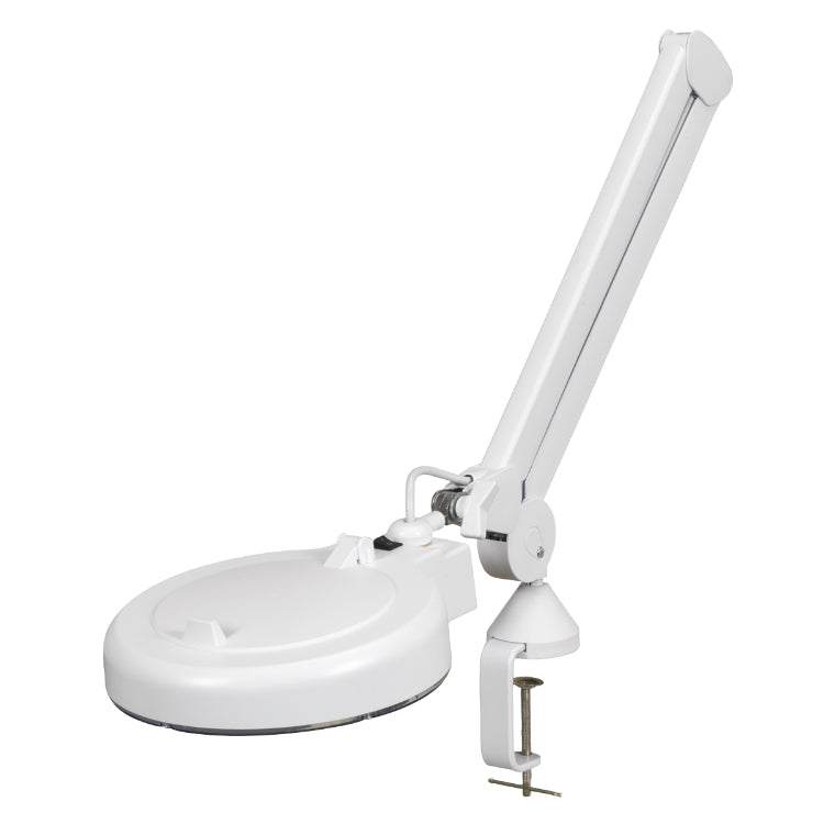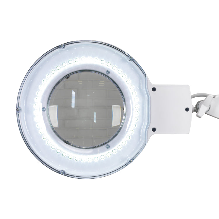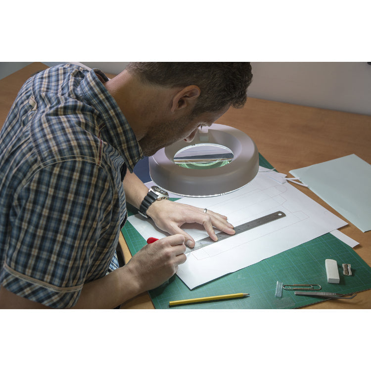 Powerful 3 dioptre 120mm precision lens gives high quality magnifying capabilities. Features 48 SMD LEDs to illuminate the object for improved detailed work. Multi-position swing arm allows simple positioning of lamp to suit task. Features a G-clamp base to secure to a workbench or table. Ideal for electrical engineers, engravers and fine detail work. Supplied, BS power adaptor.
