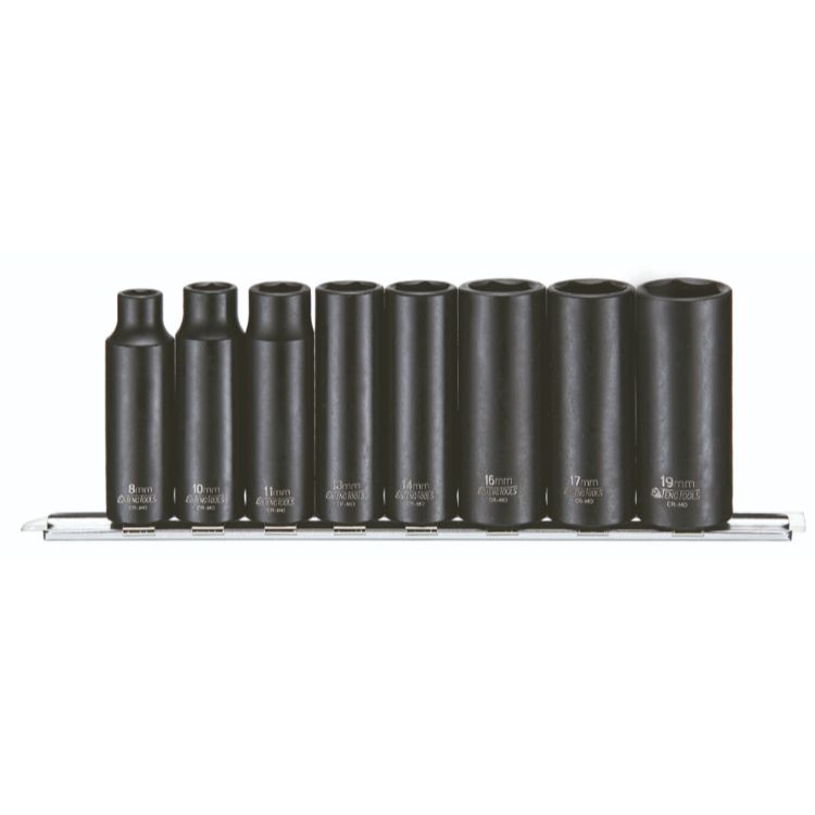 ANSI standard design for use with power tools with a ball bearing socket retainer Chrome molybdenum for use with power tools Supplied on a 290mm clip rail for storage as a set