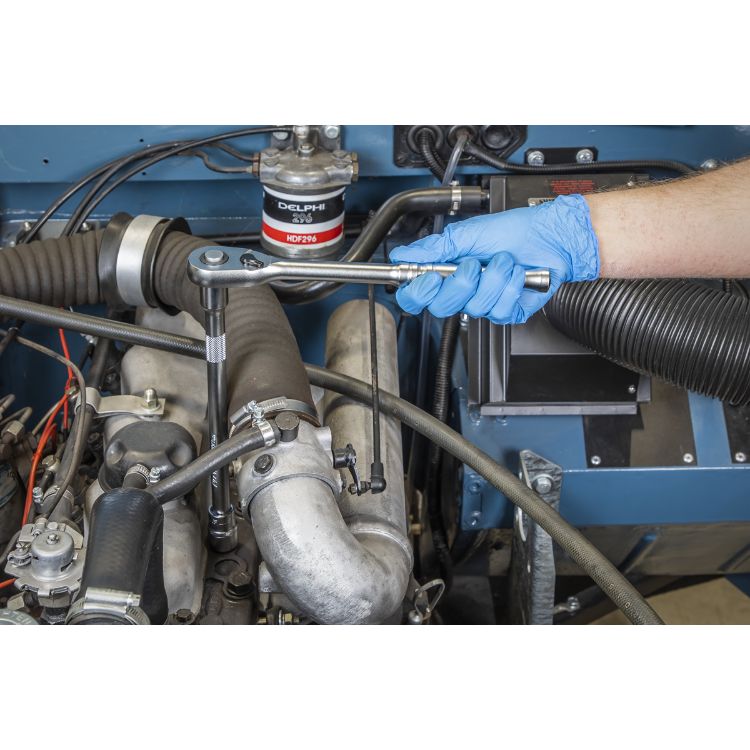 1/2"Sq Drive Gear-To-Gear 90-Tooth Ratchet Wrench with Quick Release, Extension Bars; 125, 250mm, Universal Joint, 3/8”Sq Drive Female – 1/2”Sq Drive Male T-Bar Adaptor, 8mm Hex Bit Adaptor