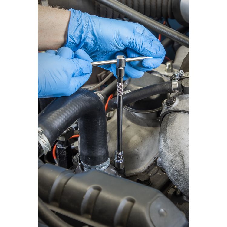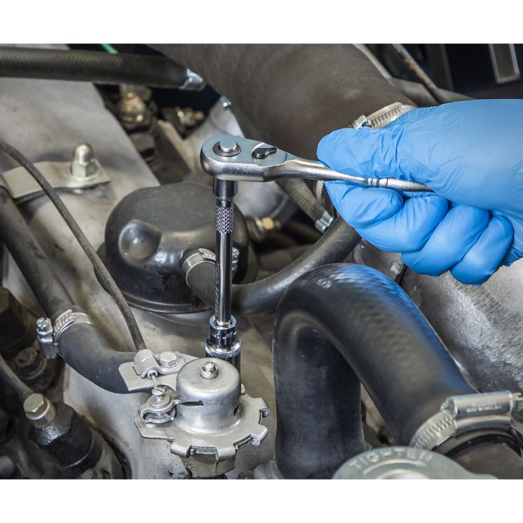 1/4"Sq Drive Gear-To-Gear 90-Tooth Ratchet Wrench with Quick Release, Extension Bars; 50, 100mm, 150mm Flexible Extension Bar, 1/4”Sq Drive Sliding T-Bar, Spinner Handle, Universal Joint