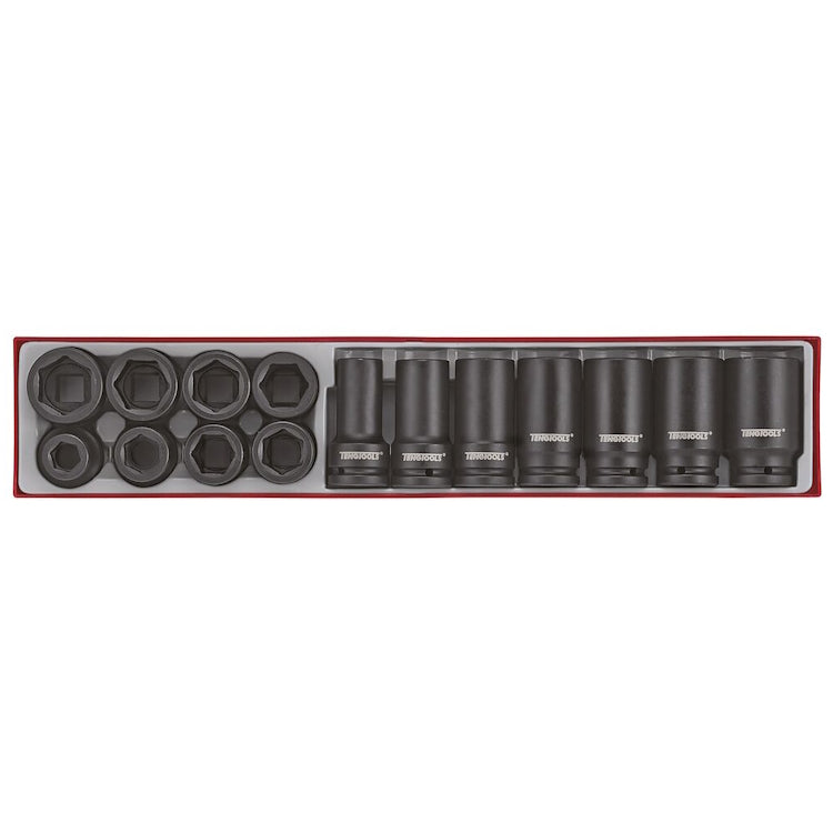 DIN standard design for use with a retaining pin and ring Chrome molybdenum for use with power tools Supplied in the unique Teng Tools drawer width TTX tray