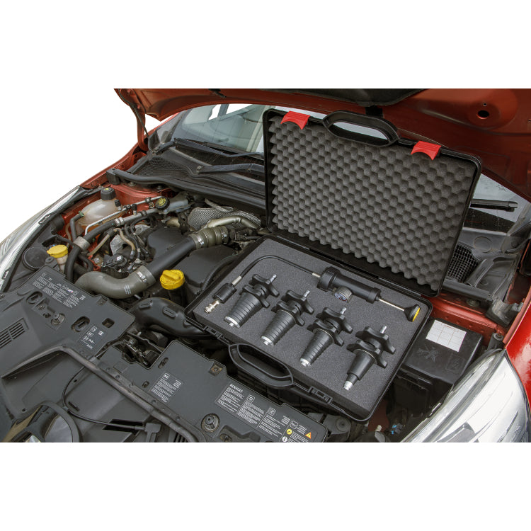 Capless tester uses cone adaptor system to seal and pressurise the cooling system.