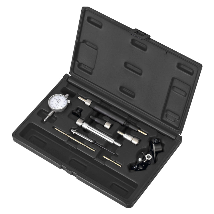 Suitable for timing distributor type diesel fuel pumps on engines fitted, Bosch VE Rotary, Kiki, Nippon Denso, CAV Rotodiesel - top entry ports. These systems are mainly found on cars and light commercial vehicles. Supplied, dial gauge in storage case.