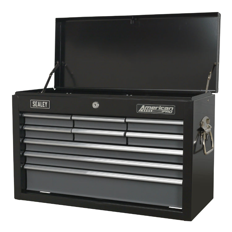 Features drop down carry handles, smooth 35mm ball-bearing drawer slides, cylinder lock and for additional security, steel bars that can be locked into place to keep drawers shut.