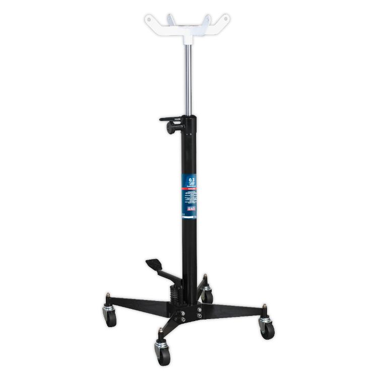 This transmission jack features Quick Lift to reduce the time and effort needed to get saddle to gearbox. Single foot pedal operation keeps hands-free during lifting process. Spring loaded dead man's safety release control reduces the risk of inadvertent lowering. 2-Way hydraulic unit ensures that the saddle lowers at a controlled speed at all times, even without load. Saddle is reversible allowing a jack pad to be fitted to support items other than transmissions. Castors and side handle make the unit easily manoeuvrable. Hydraulic unit larger than the economy models for improved performance and durability. Can be fitted, optional Adjustable Gearbox Support - Model No. ADT3.
