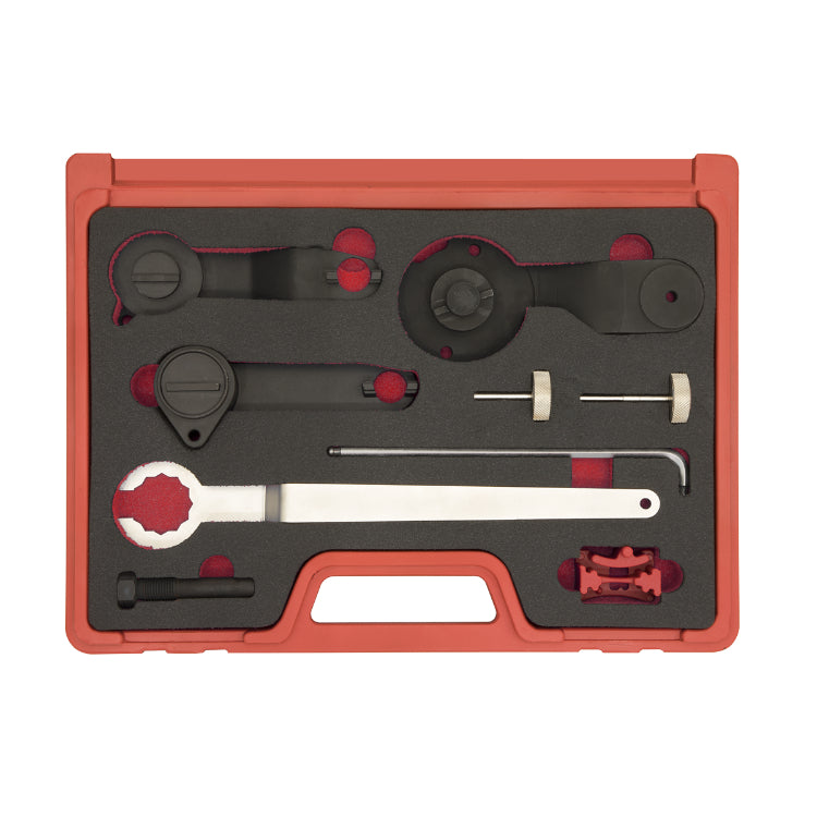 Suitable for the latest generation VAG TSi petrol engines.Contains essential tools for camshaft and crankshaft locking.Supplied in storage case, full instructions and a warning tag.Warranty: 1 year